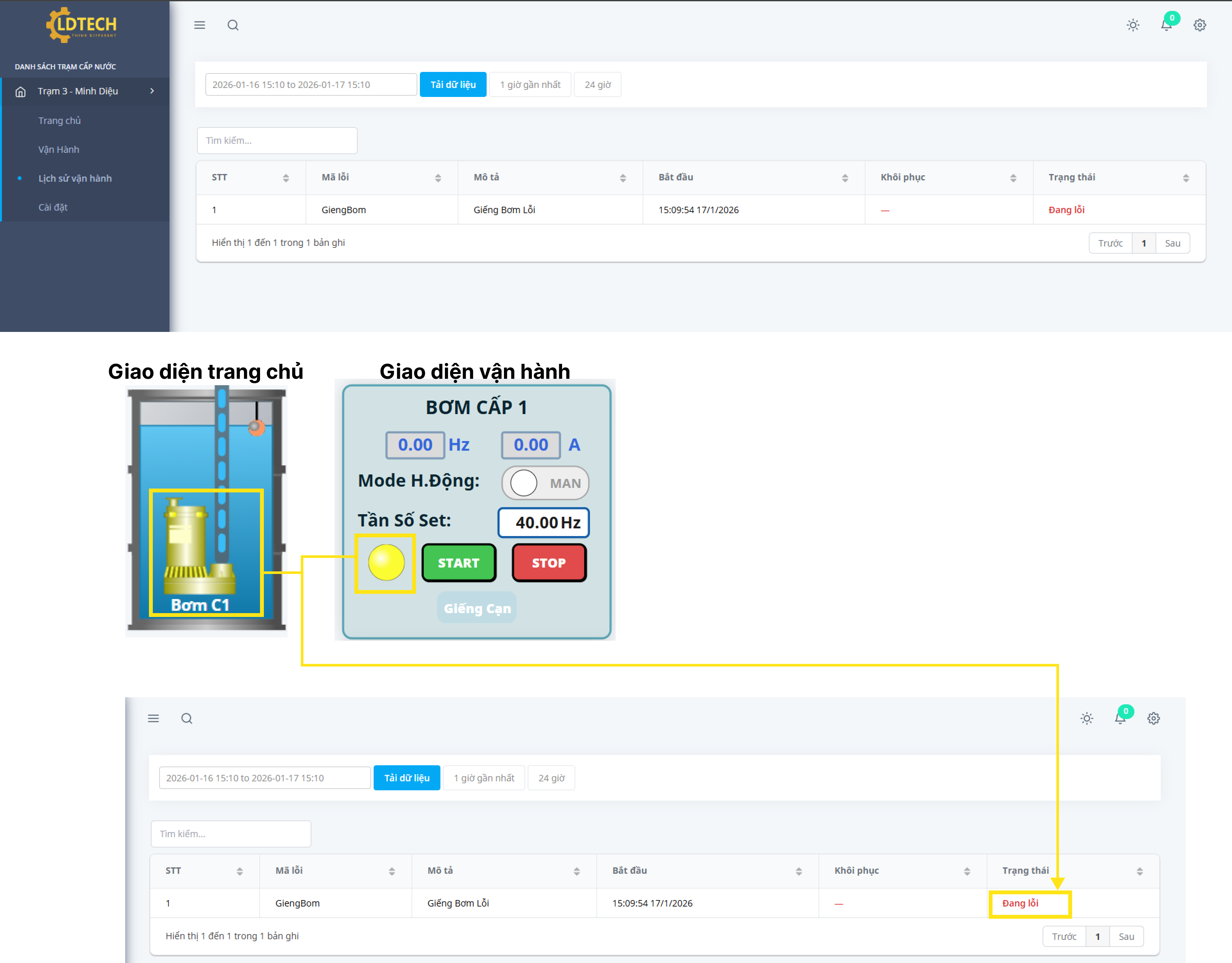 Hình 3. Popup & set giá trị vận hành cho máy bơm